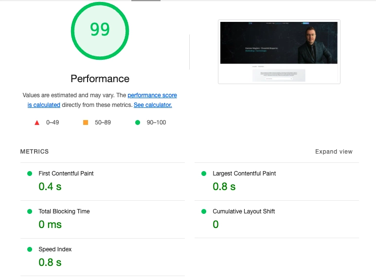 Konkretne dane? Strony na Next.js osiągają 100% na desktopie i 86% na urządzeniach mobilnych w testach wydajności, podczas gdy WordPress zazwyczaj osiąga 97% na desktopie, ale tylko 51% na urządzeniach mobilnych. A Google ocenia Twoją stronę przede wszystkim z perspektywy urządzeń mobilnych.